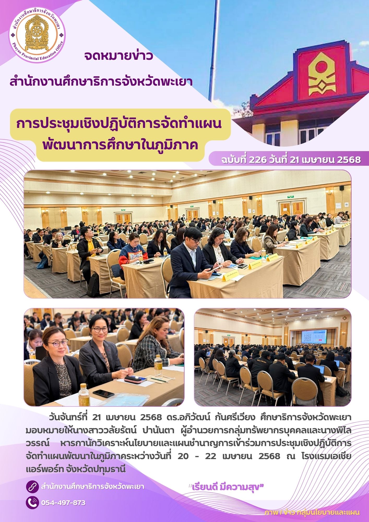 หมวดหมู่ข่าว : ข่าวการดำเนินงานศึกษาธิการจังหวัด | หน่วยงาน : สำนักงานศึกษาธิการจังหวัดพะเยา | ดู 20 ครั้ง