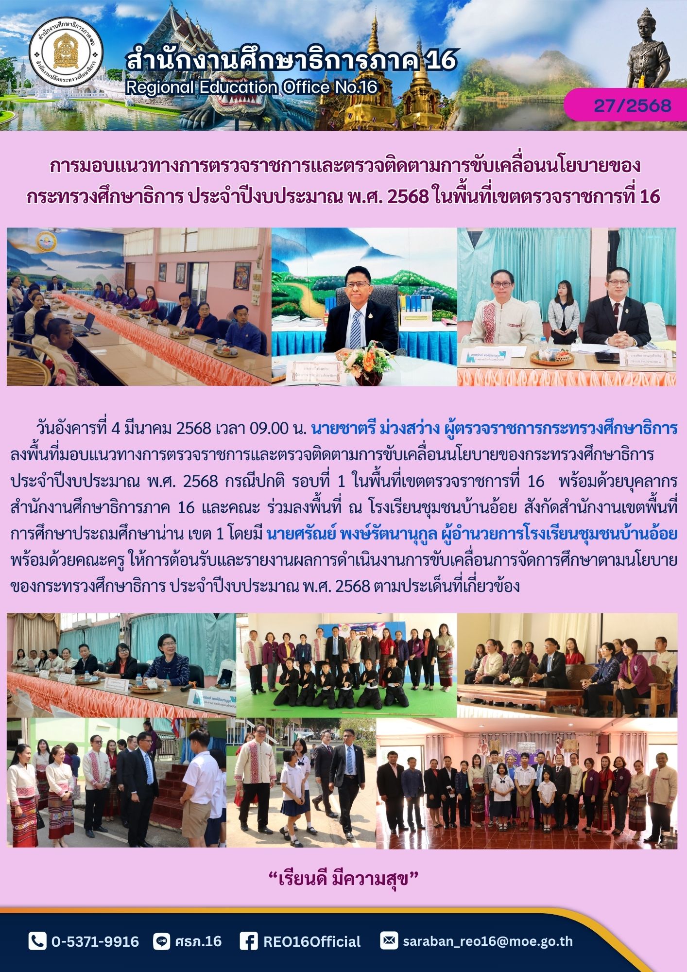 หมวดหมู่ข่าว : ข่าวการดำเนินงานศึกษาธิการภาค 16 | กลุ่มงาน : กลุ่มอำนวยการ | ดู 50 ครั้ง