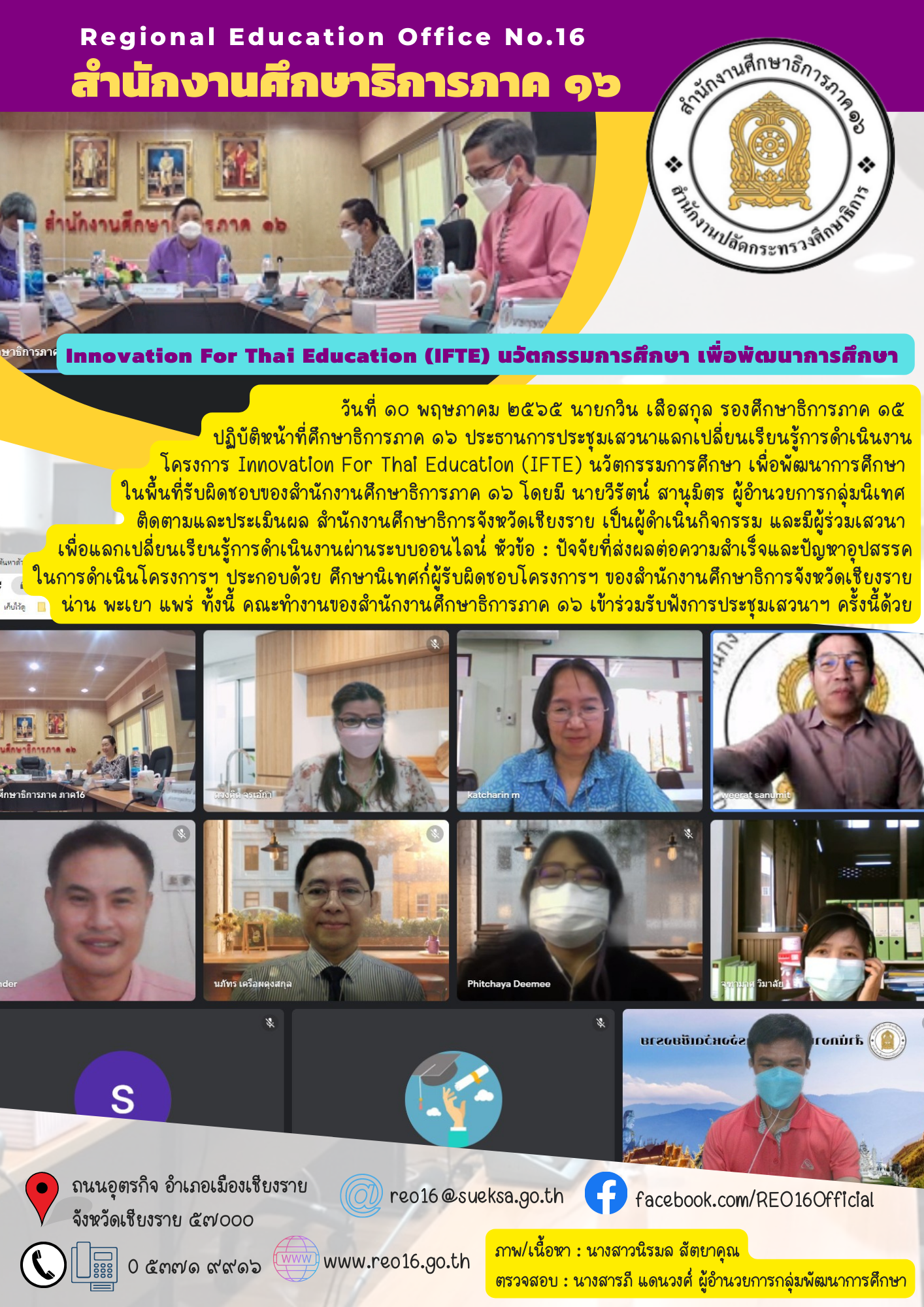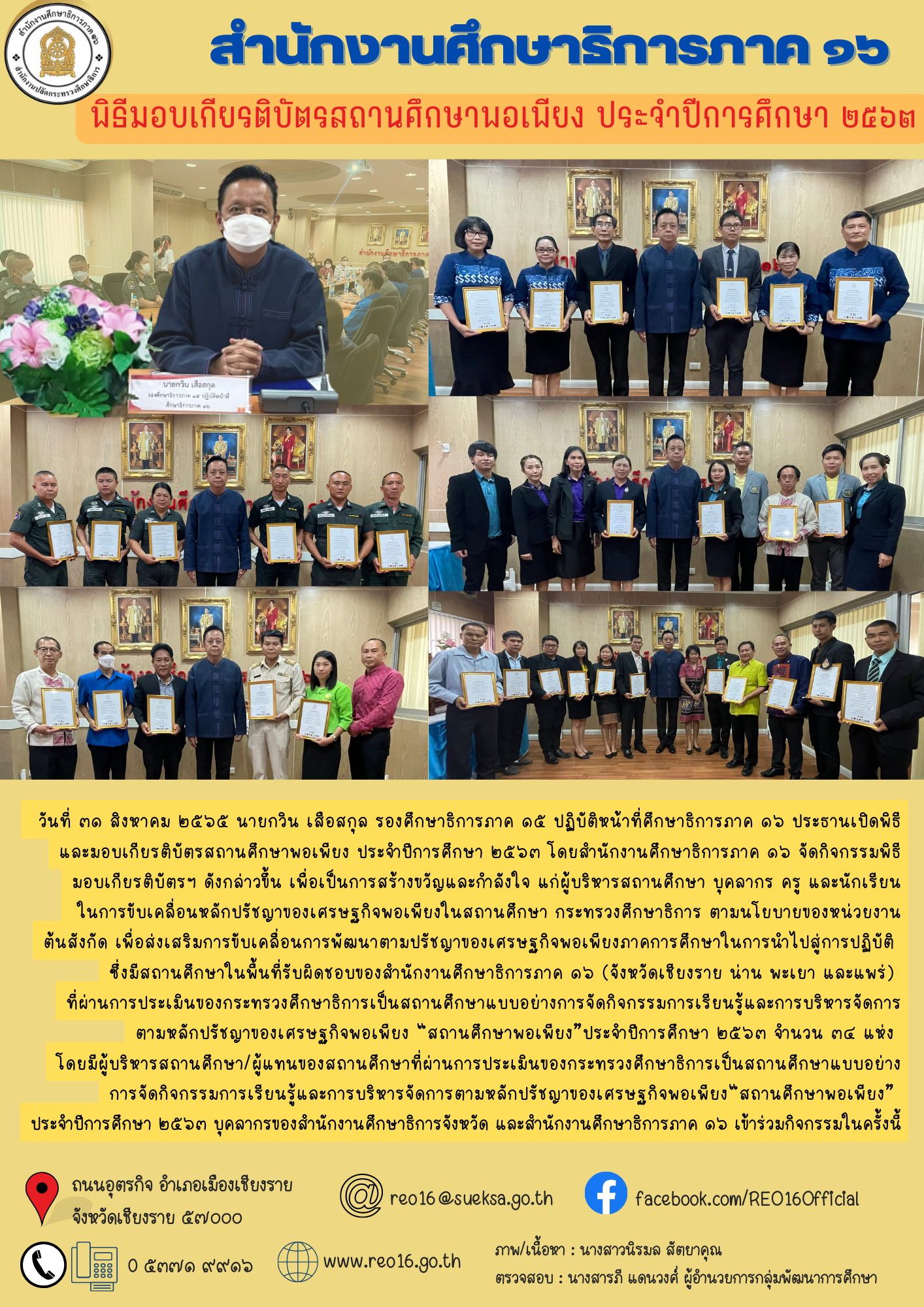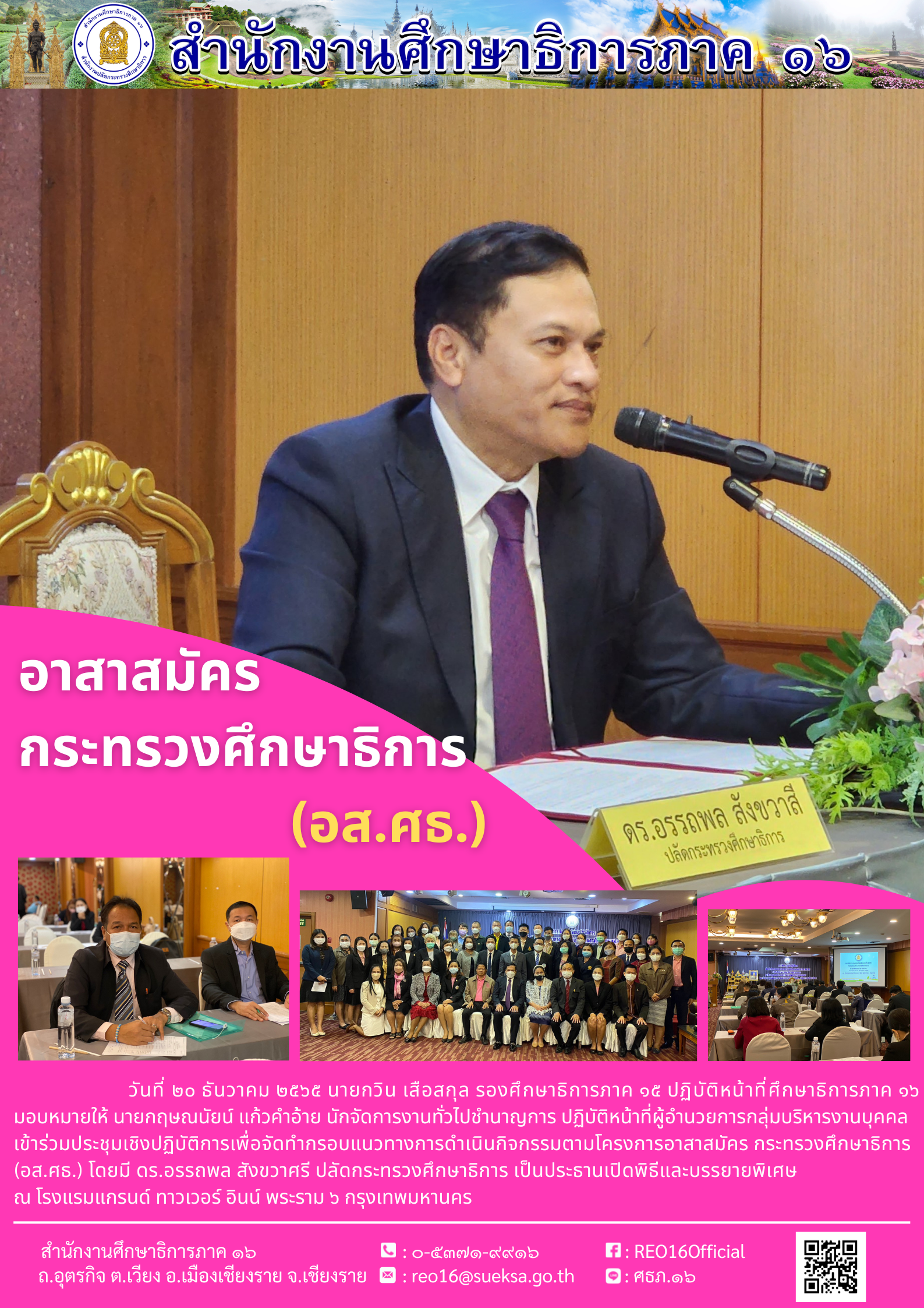 หมวดหมู่ข่าว : ข่าวการดำเนินงานศึกษาธิการภาค 16 | กลุ่มงาน : กลุ่มพัฒนาการศึกษา | ดู 430 ครั้ง
