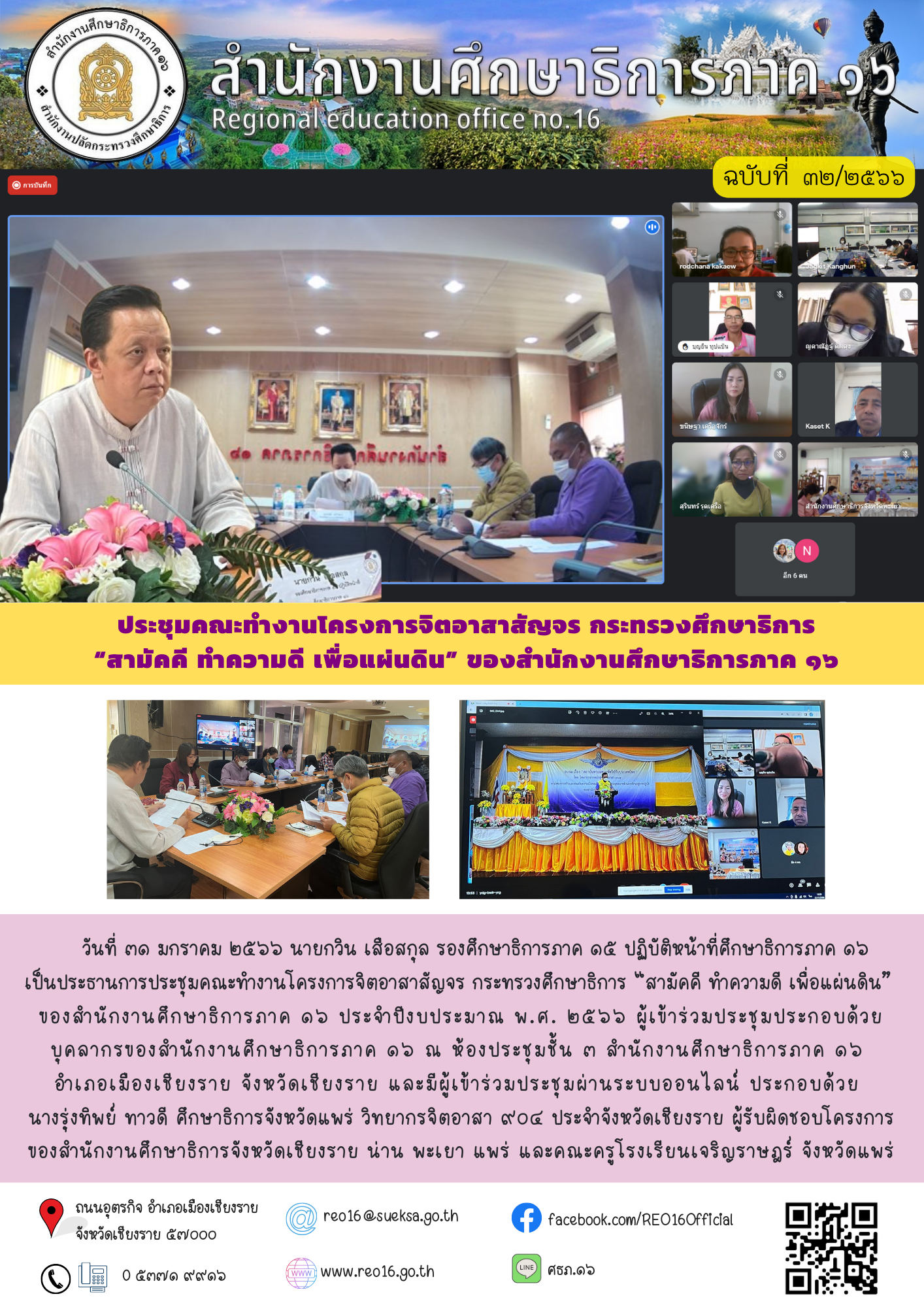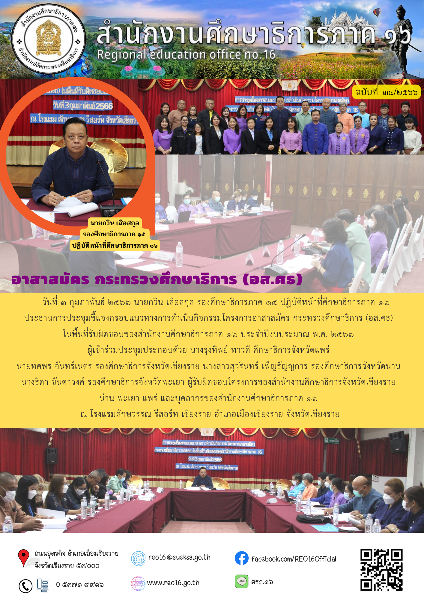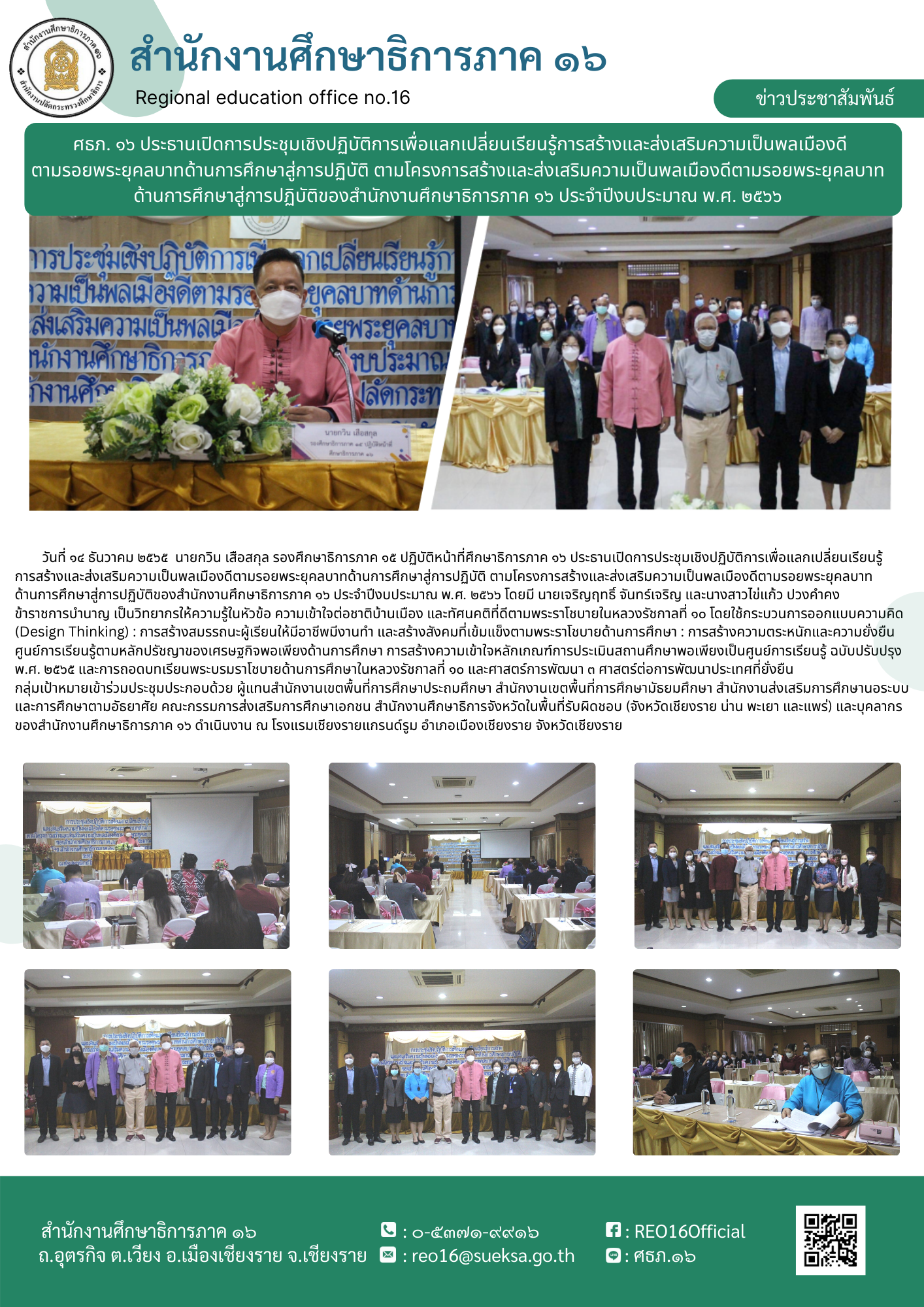 หมวดหมู่ข่าว : ข่าวการดำเนินงานศึกษาธิการภาค 16 | กลุ่มงาน : กลุ่มพัฒนาการศึกษา | ดู 475 ครั้ง
