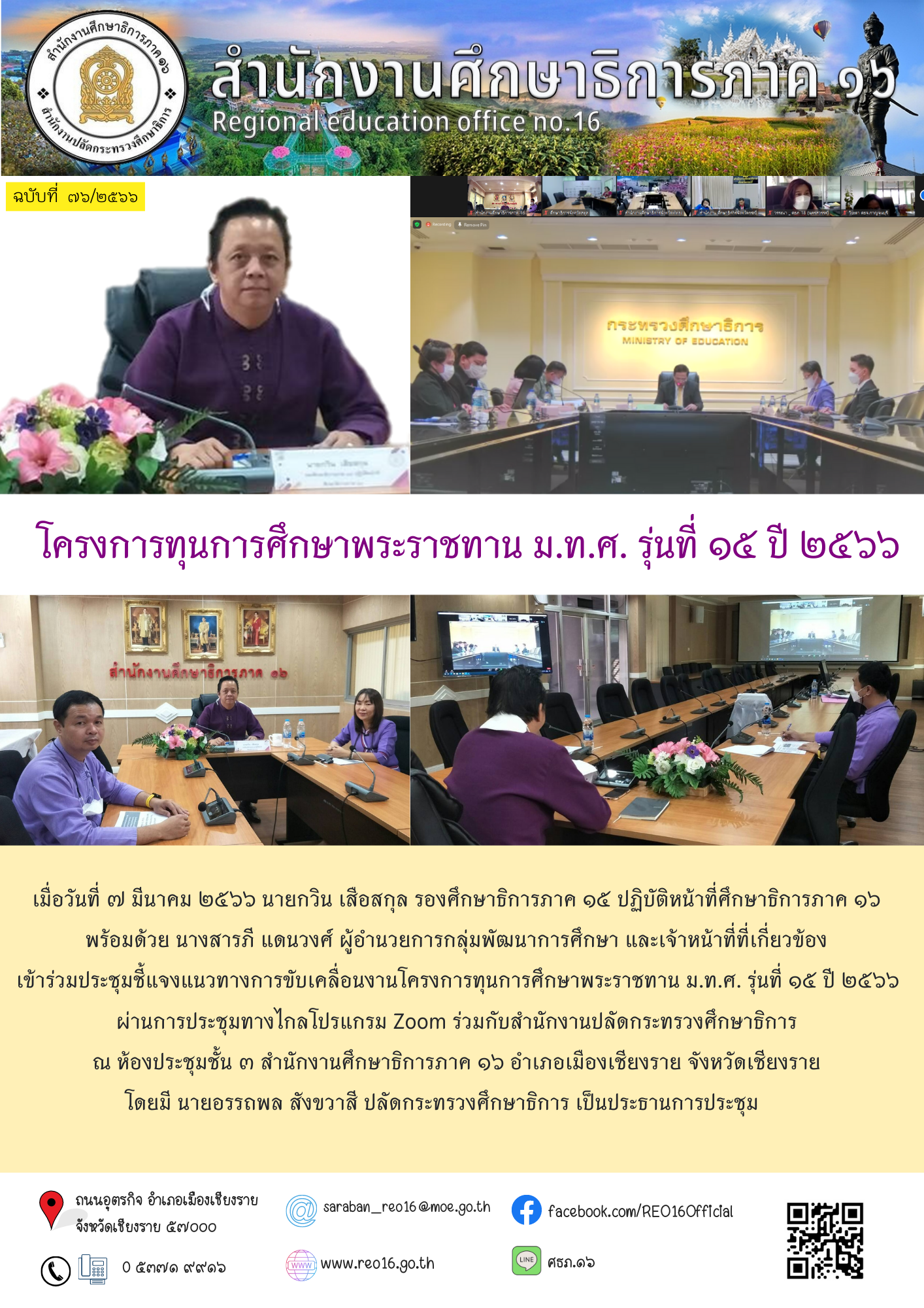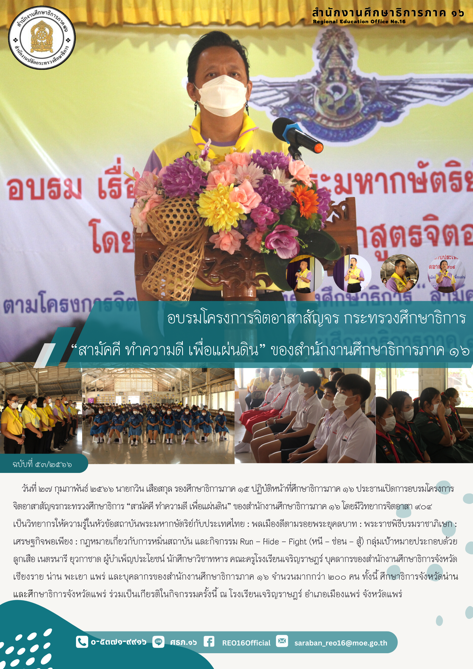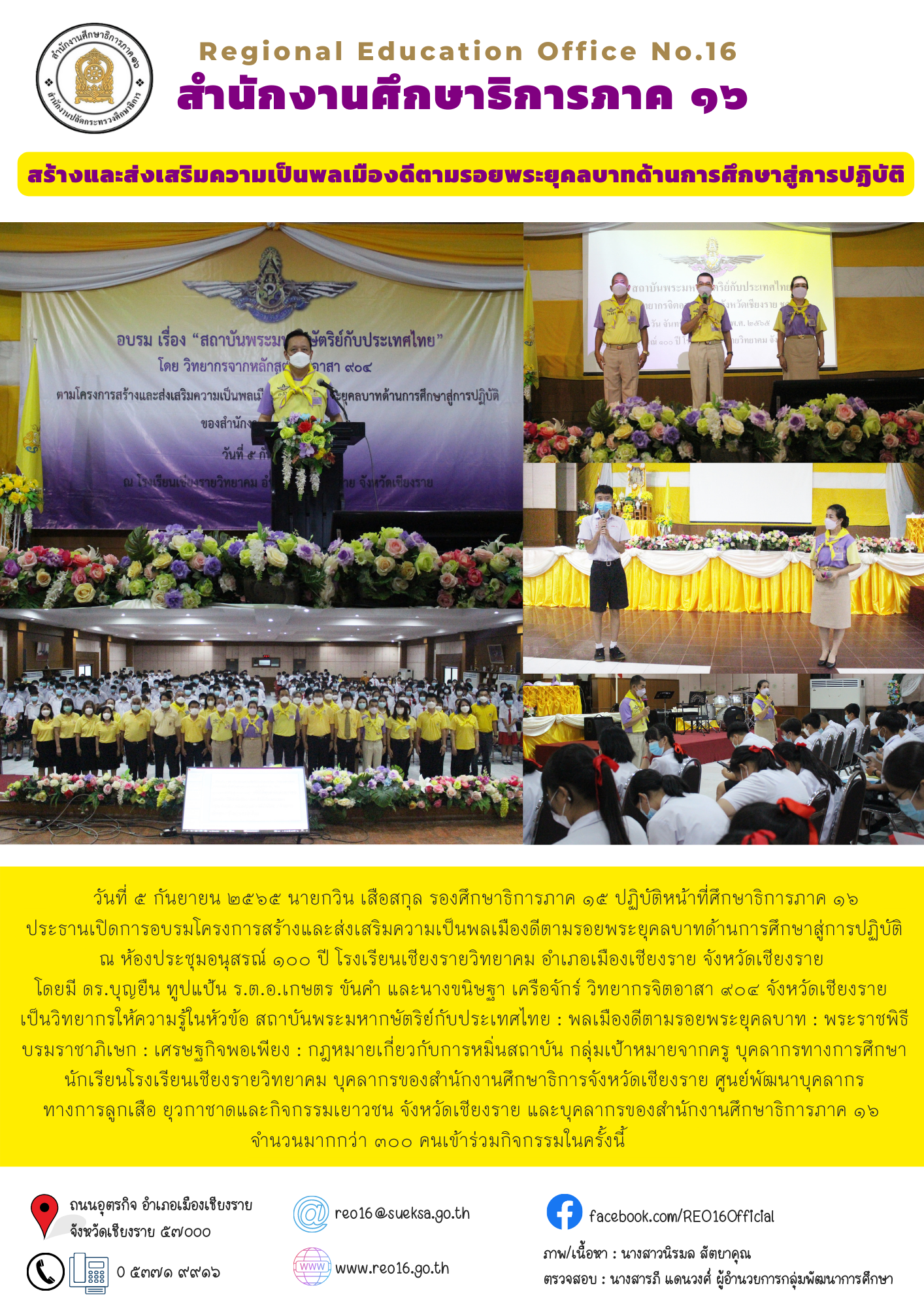 หมวดหมู่ข่าว : ข่าวการดำเนินงานศึกษาธิการภาค 16 | กลุ่มงาน : กลุ่มพัฒนาการศึกษา | ดู 475 ครั้ง
