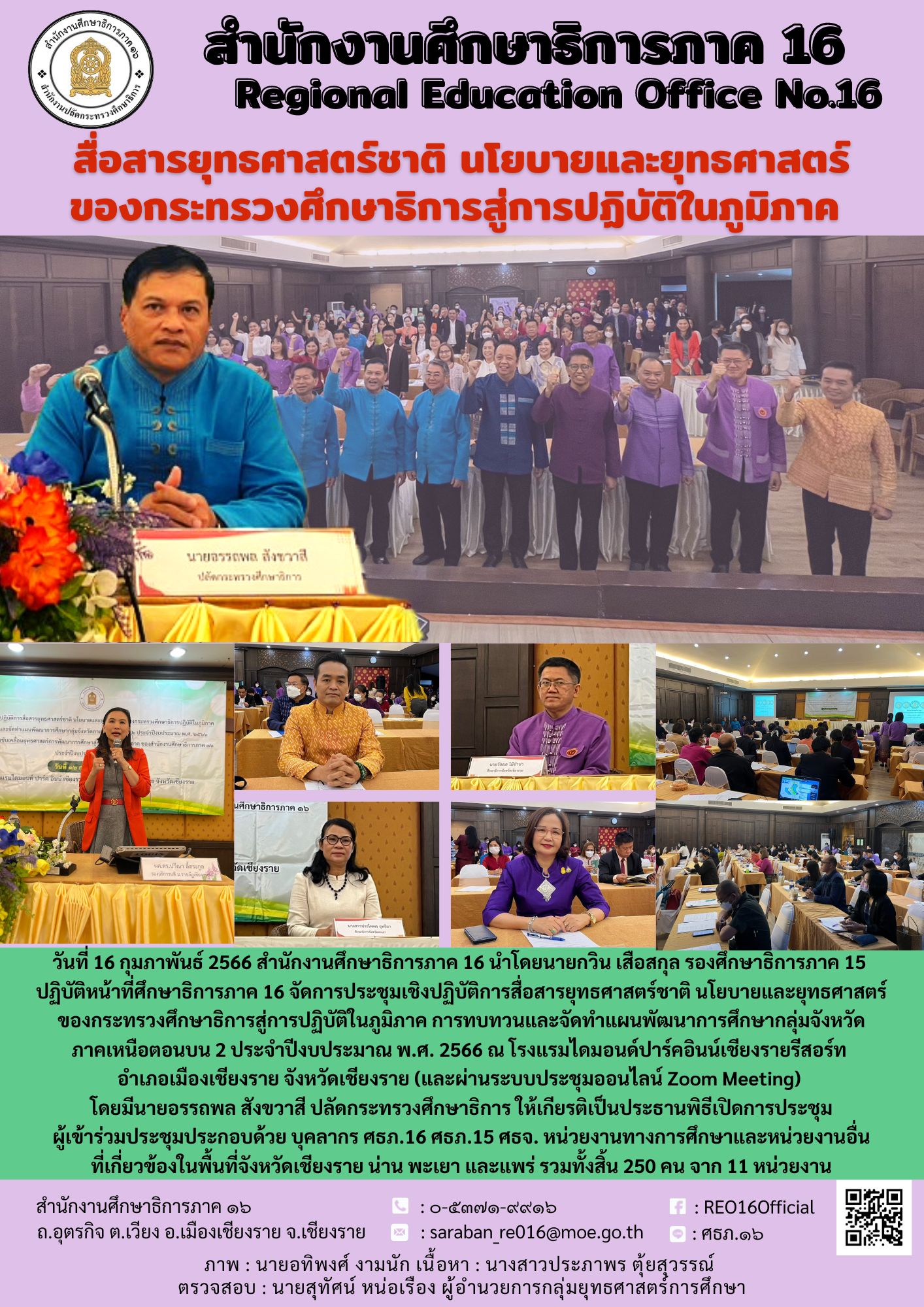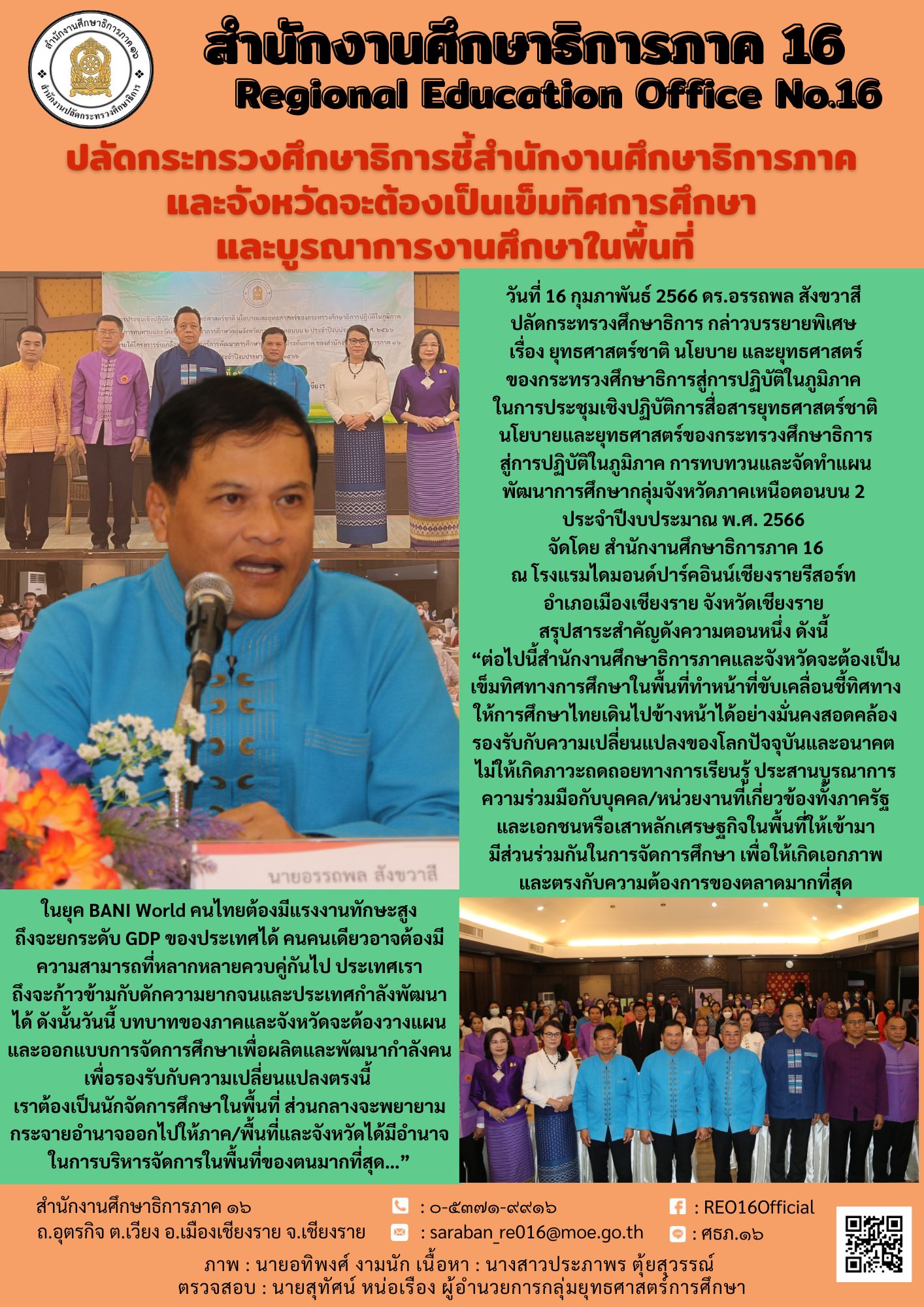 หมวดหมู่ข่าว : ข่าวการดำเนินงานศึกษาธิการภาค 16 | กลุ่มงาน : กลุ่มยุทธศาสตร์การศึกษา | ดู 483 ครั้ง