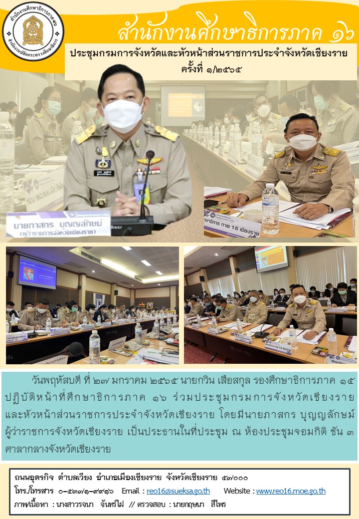 หมวดหมู่ข่าว : ข่าวการดำเนินงานศึกษาธิการภาค 16 | กลุ่มงาน : กลุ่มตรวจราชการและติดตามประเมินผล | ดู 428 ครั้ง