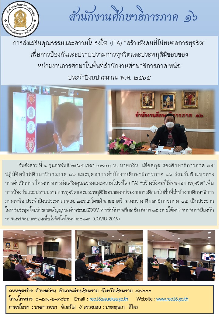หมวดหมู่ข่าว : ข่าวการดำเนินงานศึกษาธิการภาค 16 | กลุ่มงาน : กลุ่มตรวจราชการและติดตามประเมินผล | ดู 424 ครั้ง