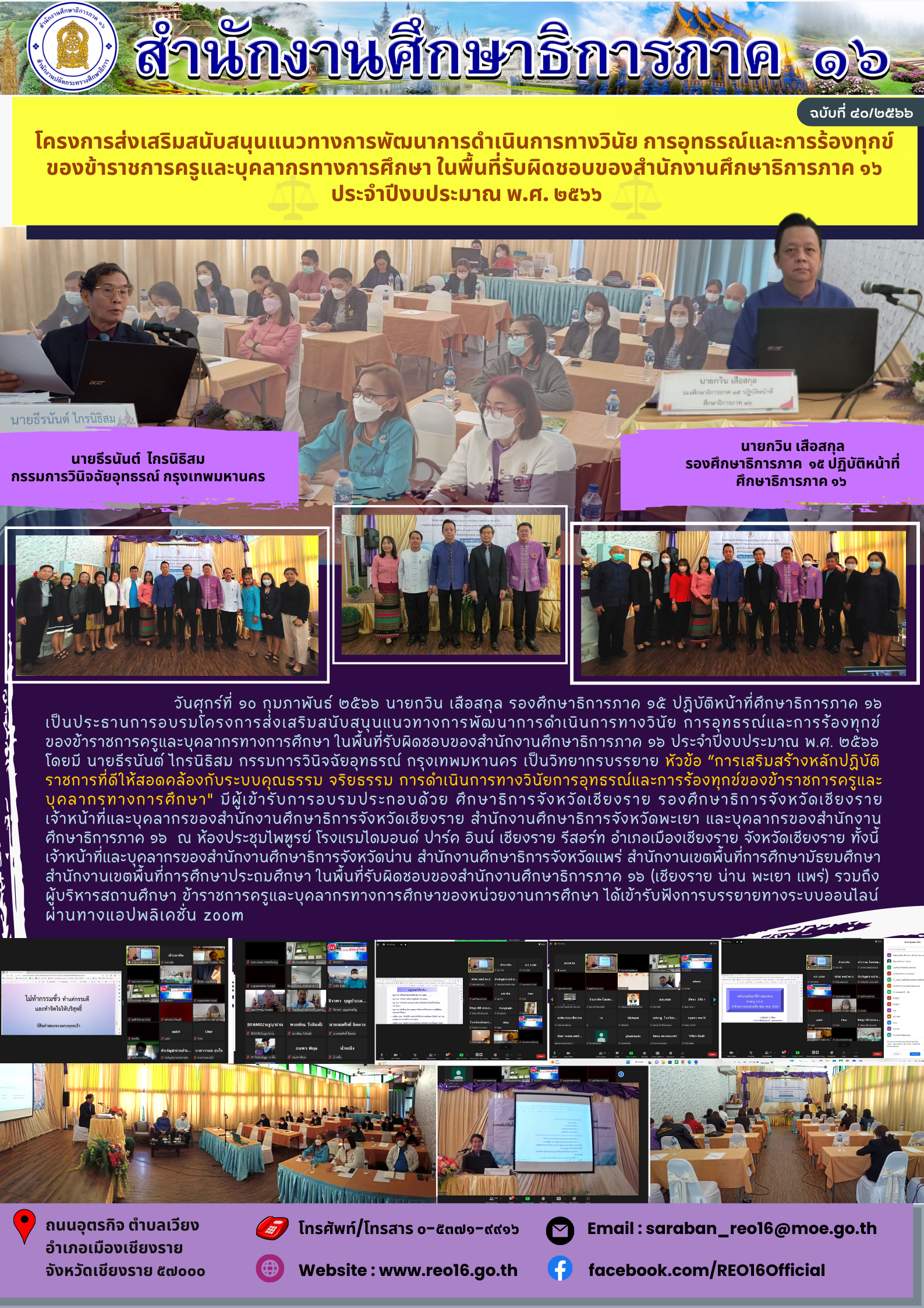 หมวดหมู่ข่าว : ข่าวการดำเนินงานศึกษาธิการภาค 16 | กลุ่มงาน : กลุ่มบริหารงานบุคคล | ดู 458 ครั้ง