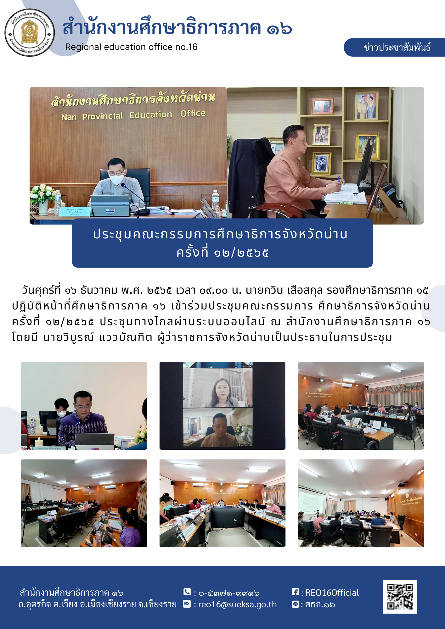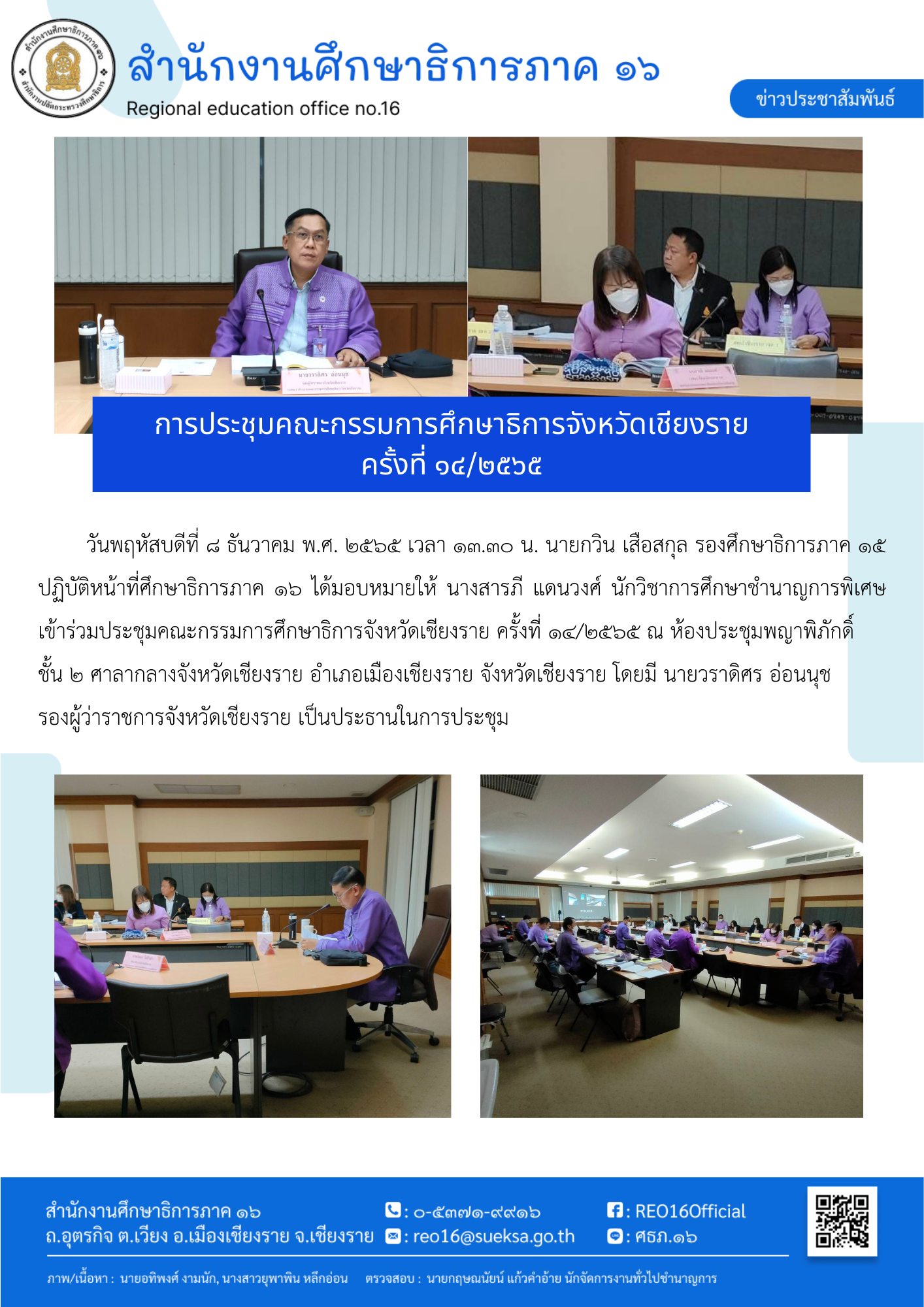 หมวดหมู่ข่าว : ข่าวการดำเนินงานศึกษาธิการภาค 16 | กลุ่มงาน : กลุ่มบริหารงานบุคคล | ดู 542 ครั้ง